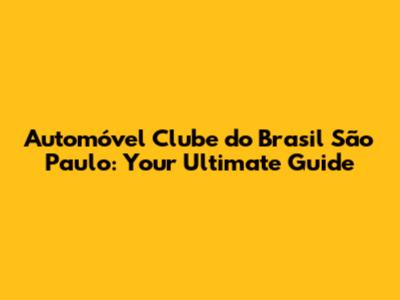 Automóvel Clube Do Brasil São Paulo: Your Guide